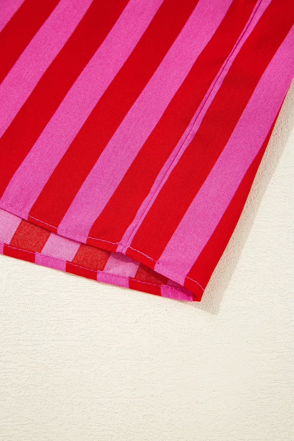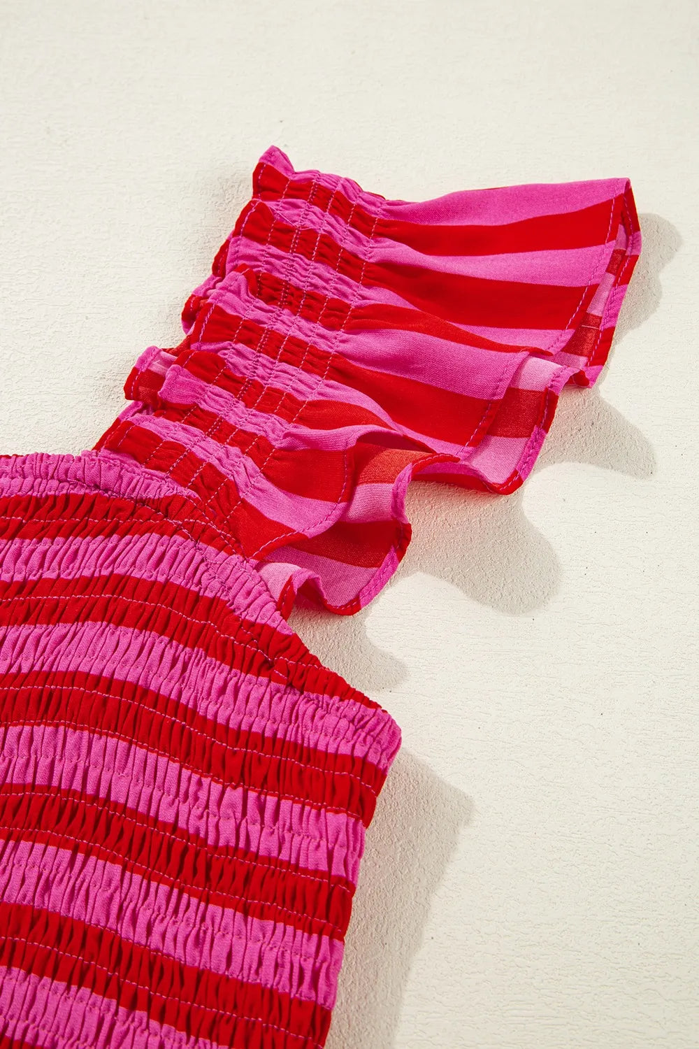 Stripe Flutter Sleeve Smocked Bodice Tiered Maxi Dress